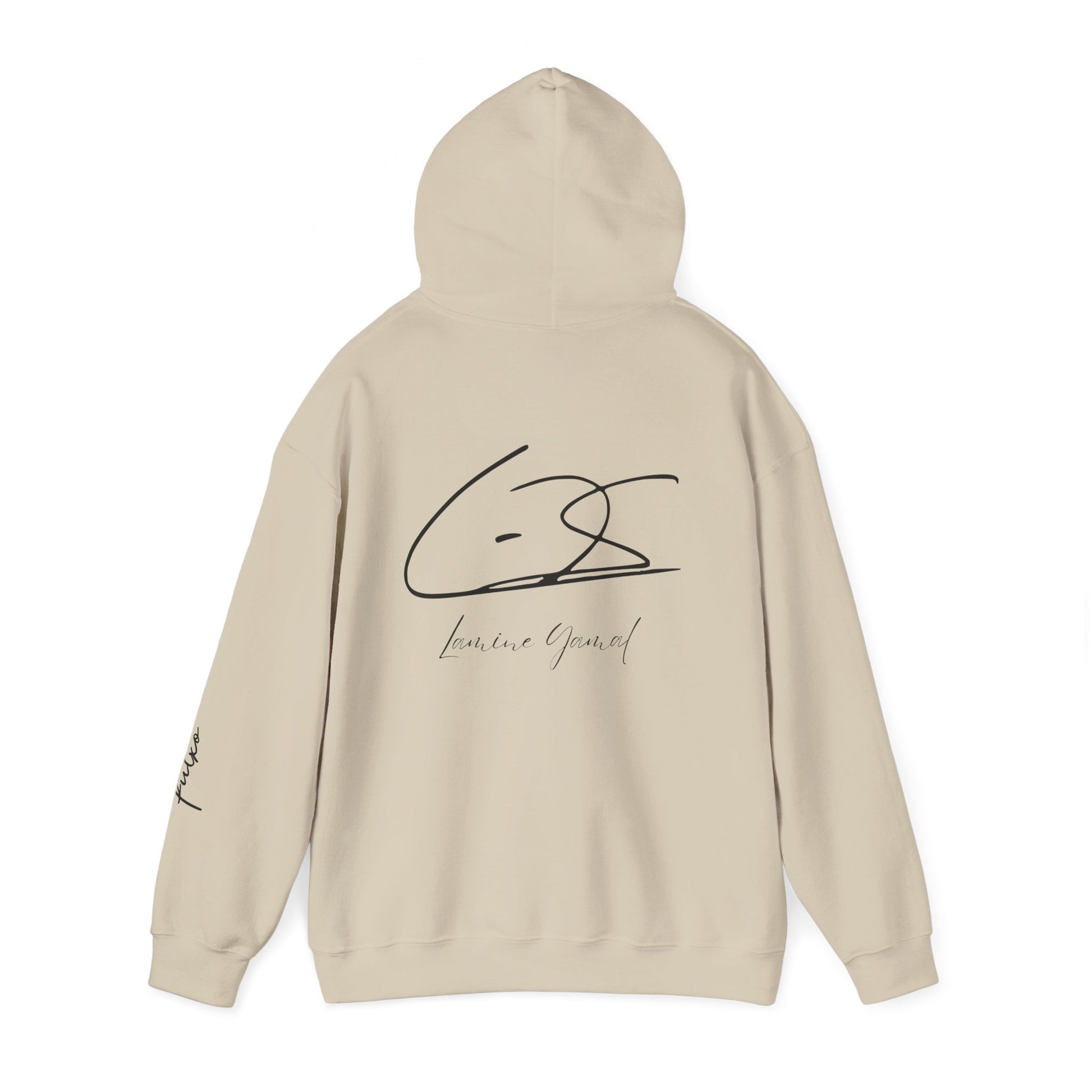 Level up your street style with the Lamine Yamal Signature Hoodie. Clean, minimal, and built for everyday wear, this piece brings pro energy to your fit. The back features Yamal’s iconic signature design — a bold statement for those who move with confidence and style. Made with a soft cotton-blend fabric, it’s all about comfort, quality, and a relaxed vibe that fits any scene — from the pitch to the streets.